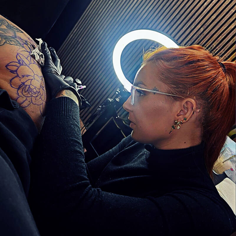 Mijn stijl kenmerkt zich door strakke lijnen, zachte schaduwen en vrouwelijke creaties. Ik ontwerp graag tattoos die balans brengen tussen kracht en zachtheid.
